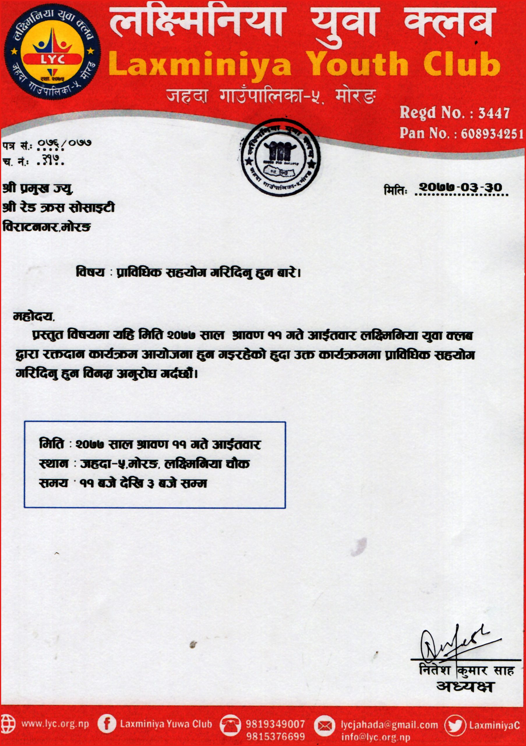 लक्ष्मिनिया युवा क्लब को आयोजना मा ३४ पिन्ट ब्ल्ड संकलन ।।