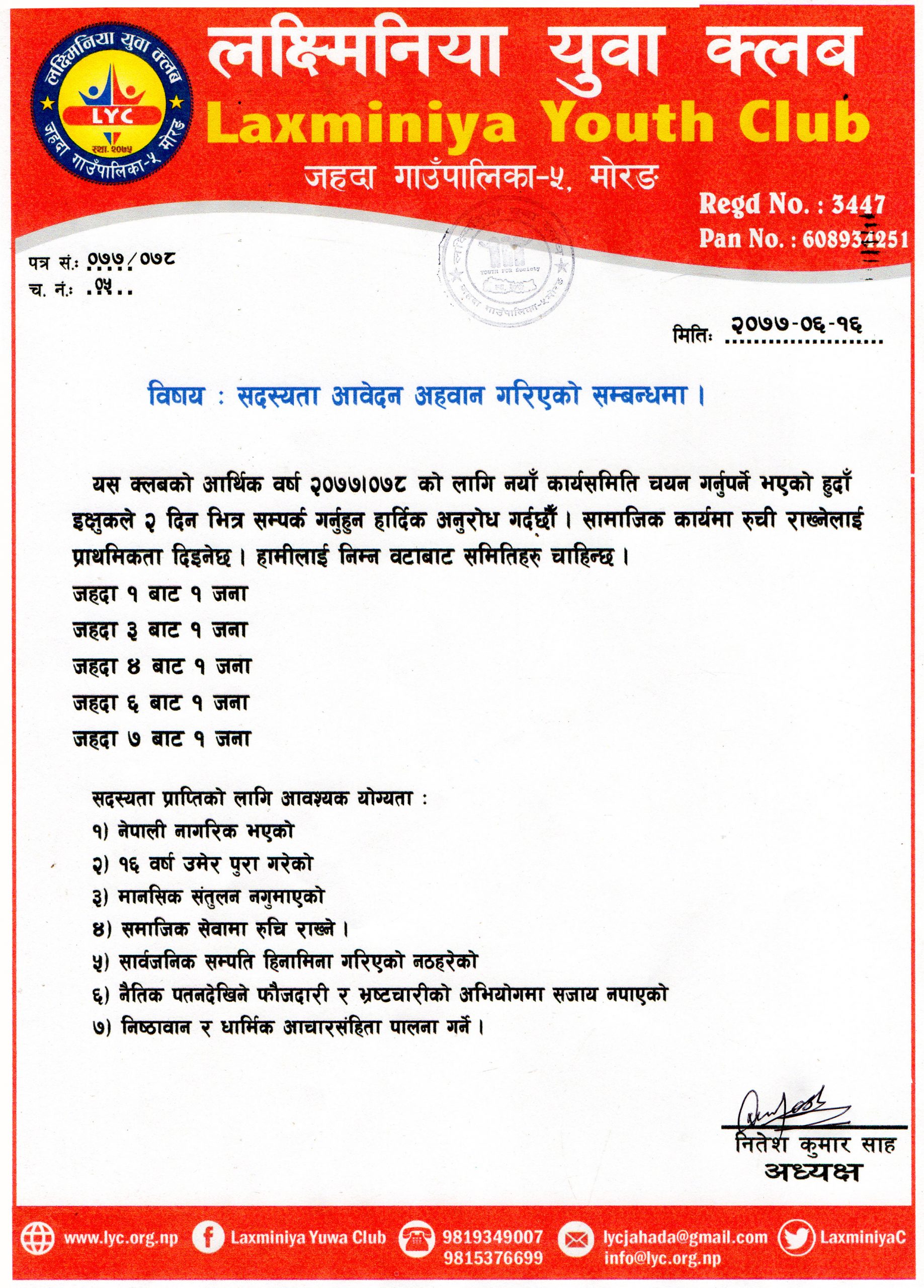 सदस्यता आवेदन आहवान सम्बन्धमा।